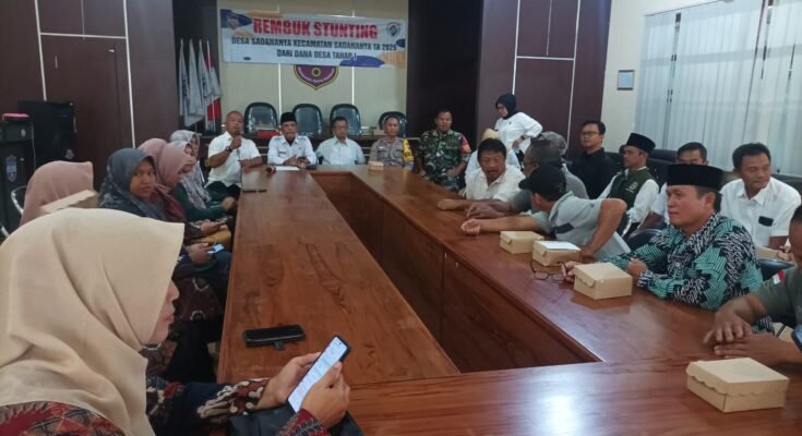 CIAMIS ~ Polsek Lakbok Polres Ciamis Polda Jabar menghadiri rembug stunting bersama masyarakat dan pemerintah di Desa Sadananya. Kegiatan itu bertempat di Aula Desa Sadananya, Kecamatan Sadananya, Kabupaten Ciamis, Jawa Barat, Rabu (7/5/2025).