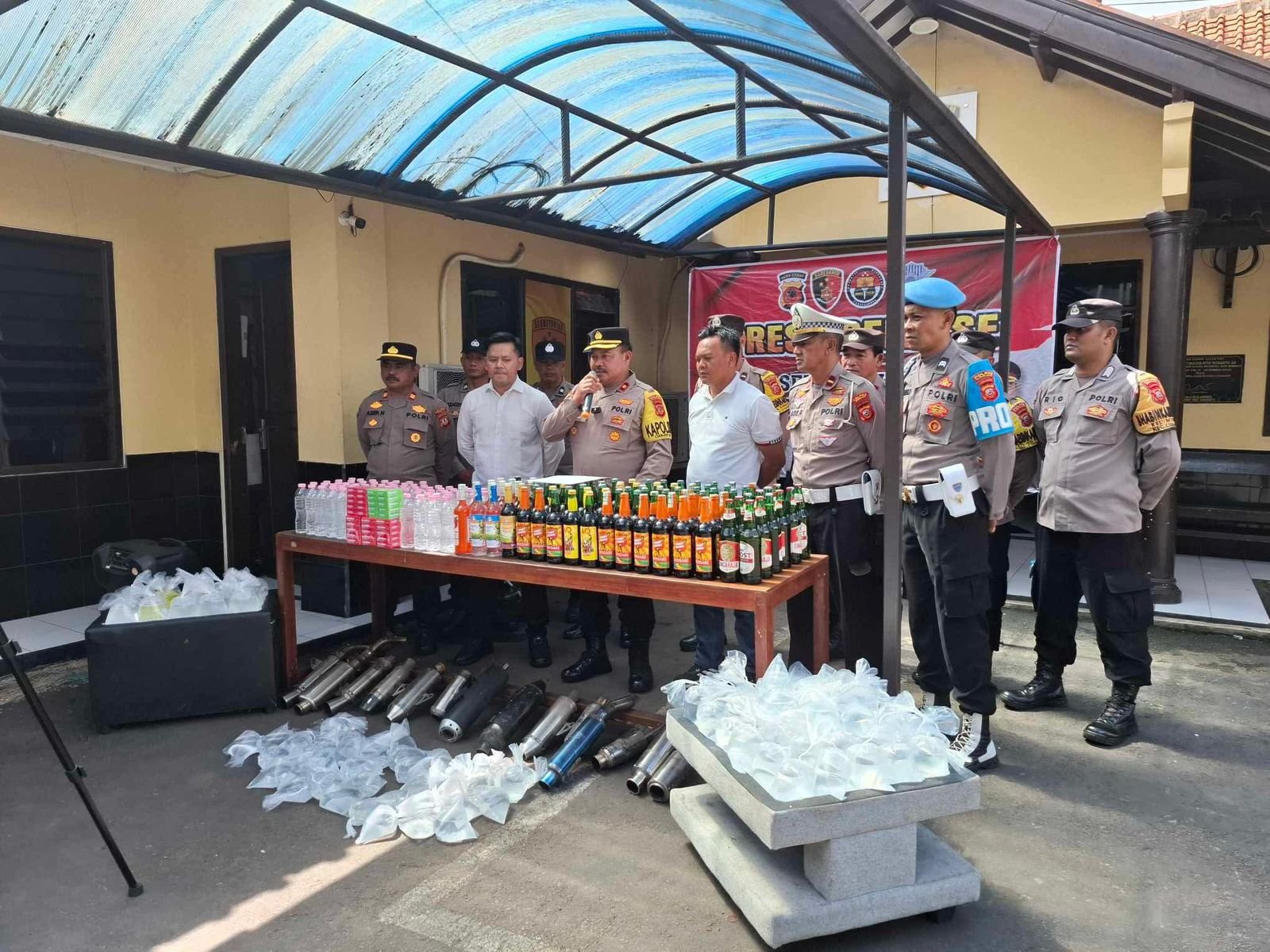 “Dalam operasi ini, kami berhasil mengamankan 100 kantong plastik minuman keras oplosan, 68 botol miras oplosan, 90 botol minuman keras berbagai merek, serta 5 pack minuman serbuk berenergi. Selain itu, petugas juga menyita uang hasil penjualan miras sejumlah Rp176.000,” ujar Kompol Cahyadi.
