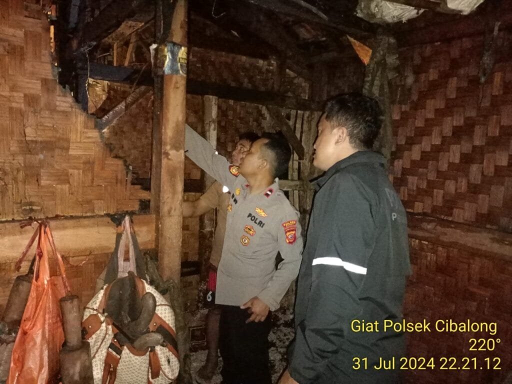 Garut | Polsek Cibalong Polres Garut cek Tkp kebakaran Rumah Panggung di Kampung Cukang Jambe, Desa Sancang, Kecamatan Cibalong, Kabupaten Garut. Rabu (31/07/2024).