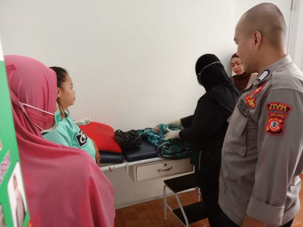 Polsek Cibatu yang menerima laporan langsung oleh TKP dan bersama warga mengevakuasi bayi tersebut ke Klinik Kusuma untuk mendapat perawatan medis.