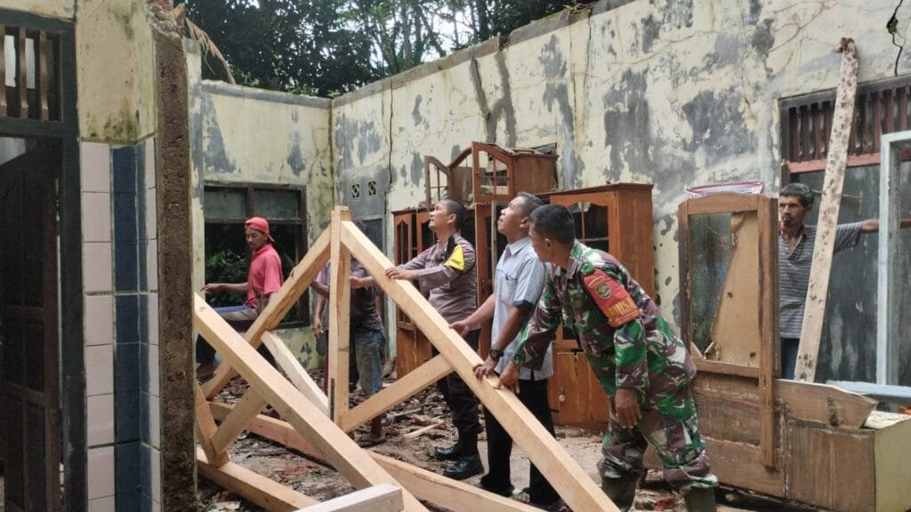 Jejak-Kriminal.Com, CIAMIS ~ Personel Polsek Cijeungjing Polres Ciamis Polda Jabar melaksanakan pemantauan sekaligus ikut gotong royong membangun rumah warga yang menerima bantuan Rutilahu dari Baznas Kabupaten Ciamis. Program Rutilahu ini diberikan kepada Keluarga Endang warga RT 01 RW 10 Dusun Cintaharja, Desa Kertaharja, Kecamatan Cijeungjing, Kabupaten Ciamis, Jawa Barat.