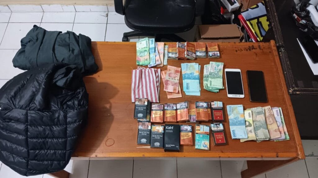 Selain mengamankan pelaku, Polsek Cikajang juga berhasil mengumpulkan sejumlah barang bukti yang diduga terlibat dalam kegiatan perdagangan uang palsu. Barang bukti yang dimaksud ialah berupa uang palsu dengan pecahan Rp. 100.000.- sejumlah 5 lembar, Rp. 50.000.- sejumlah 35 lembar, dan Rp. 20.000.- sejumlah 4 lembar, selain itu berbagai jenis rokok dalam jumlah yang cukup signifikan dan uang tunai asli yang juga diamankan sebagai bagian dari transaksi pelaku.