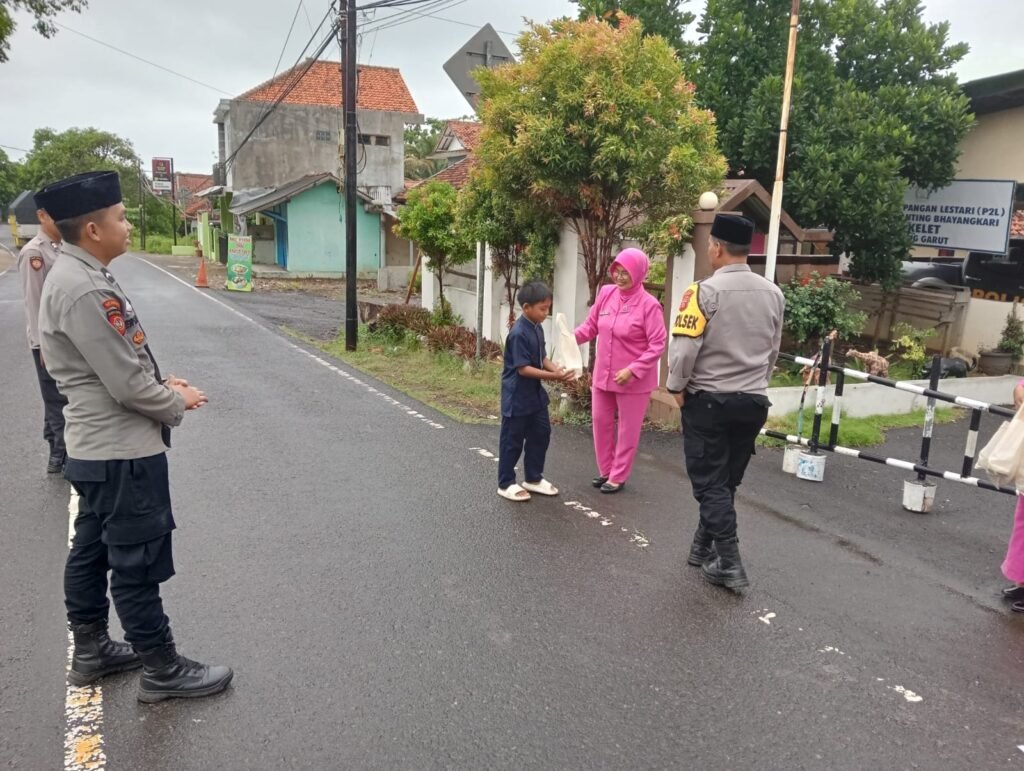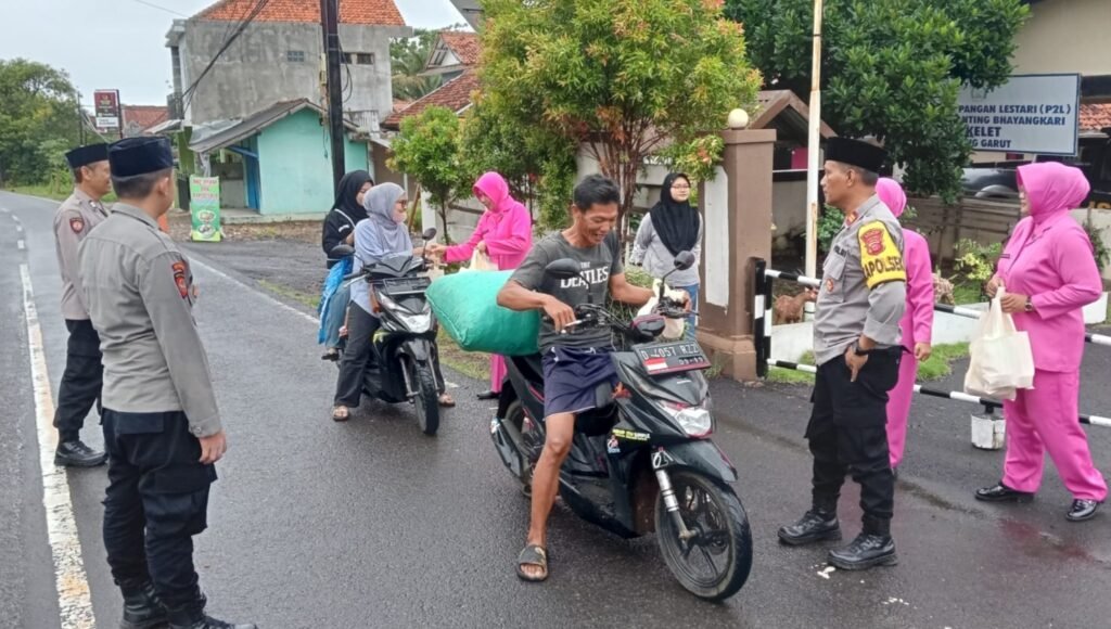 Kapolres Garut AKBP Mochamad Fajar Gemilang.,S.I.K.,M.H.M.I.K. melalui Kapolsek Cikelet IPTU Aktas Komalsyas S.,S.H. bersama Ketua Bhayangkari ranting Cikelet pimpin bagikan takjil gratis kepada masyarakat sekitar.