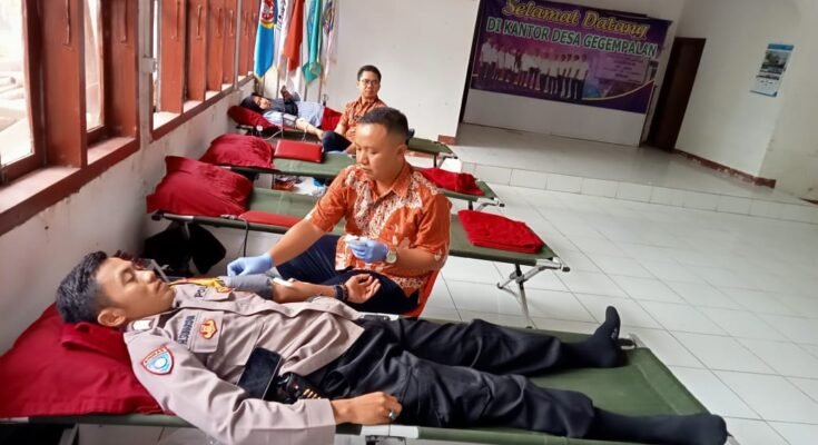 CIAMIS ~ Personel Polsek Cikoneng Polres Ciamis Polda Jabar melaksanakan monitoring sekaligus mengikuti donor darah di Desa Gegempalan. Pelaksanaan donor ini dilaksanakan di Aula Kantor Desa Gegempalan, Kecamatan Cikoneng, Kabupaten Ciamis, Jawa Barat, Kamis (7/8/2025).