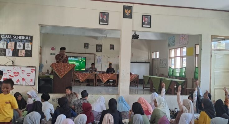 CIAMIS ~ Personel Polsek Cisaga Polres Ciamis Polda Jabar menghadiri acara peringatan Isra Mi’raj di lingkungan pendidikan. Kegiatan ini berlangsung di Ruang Kelas SDN 1 Mekarmukti, Desa Mekarmukti, Kecamatan Cisaga, Kabupaten Ciamis, Jawa Barat, Sabtu (25/1/2025).