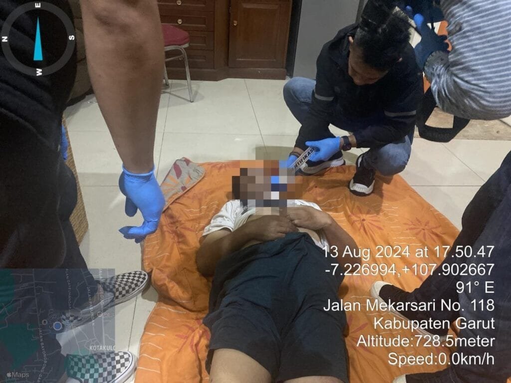 Korban yang diketahui berinisial “MM” (47) warga Kecamatan Tarogong Kidul ditemukan oleh karyawannya, Fajar dalam kondisi tergantung di ruang tengah rumah dengan menggunakan tali tambang yang diikatkan pada tangga rumah.