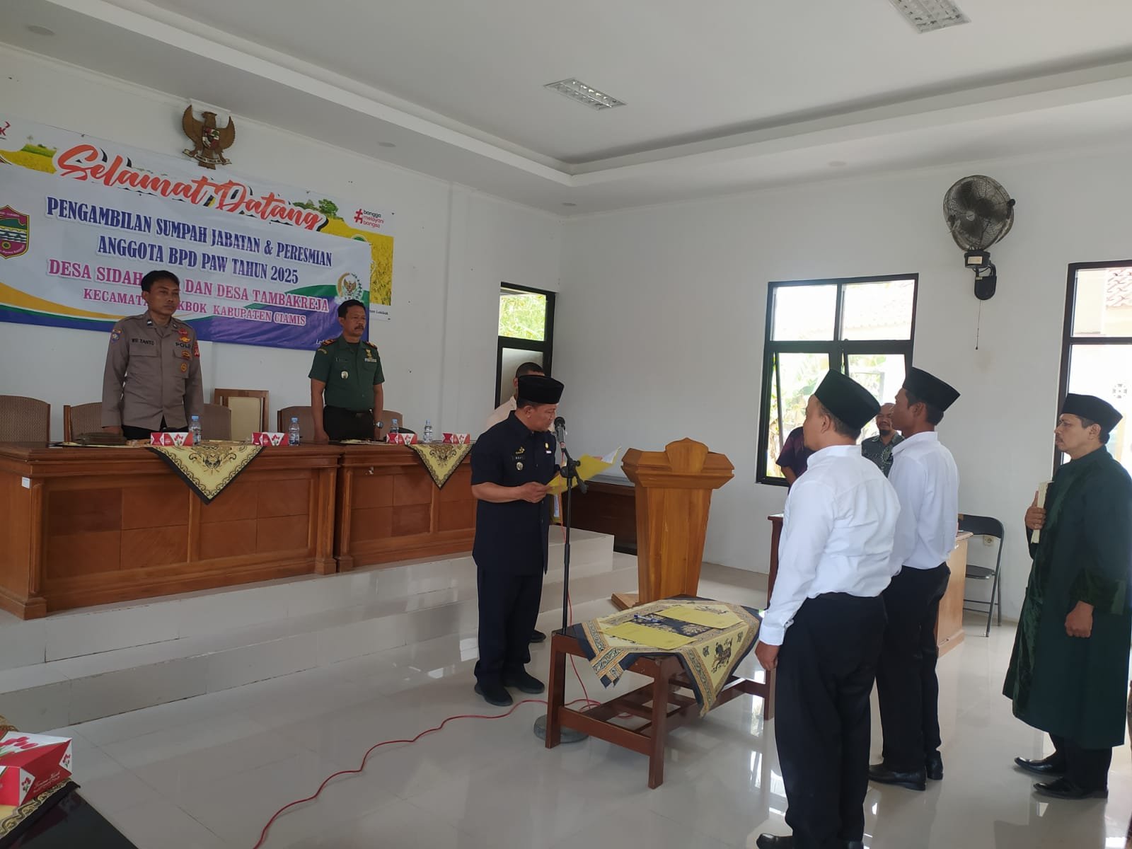 Dalam kegiatan tersebut, dua anggota BPD resmi diambil sumpahnya: Sdr. Sugianto dari Desa Sidaharja dan Sdr. Ahmad Marjuki dari Desa Tambakreja. Keduanya akan menggantikan anggota sebelumnya hingga masa jabatan berakhir.