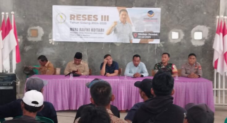 Guna mendukung kelancaran dan keamanan kegiatan reses anggota legislatif, jajaran Polsek Lakbok Polres Ciamis hadir langsung dalam kegiatan Monitoring Reses Periode III Tahun 2024–2025 dari anggota Komisi III DPRD Provinsi Jawa Barat dari Partai NasDem, Heri Rafni Kotari, yang dilaksanakan di Aula Desa Sidarahayu, Kecamatan Purwadadi, Kabupaten Ciamis, pada Senin (21/07/2025).