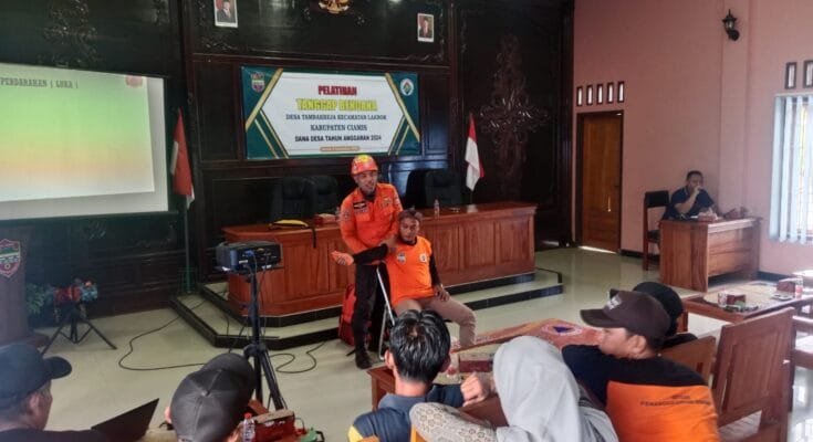 Jejak-kriminal.com, CIAMIS ~ Personel Polsek Lakbok Polres Ciamis Polda Jabar menghadiri acara Kesiapsiagaan Tanggap Bencana Skala Lokal Desa (Mitigasi Bencana) tingkat desa. Acara pembukaan tersebut digelar di aula Kantor Desa Tambakreja, Kecamatan Lakbok, Kabupaten Ciamis, Jawa Barat, Rabu (4/12/2024).