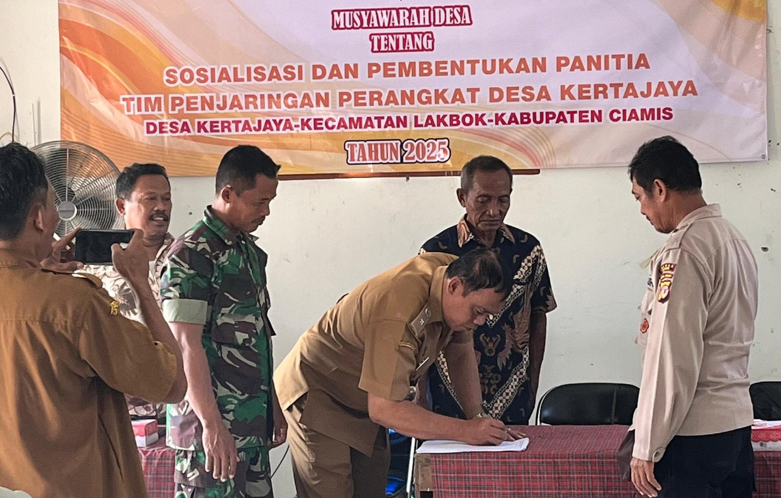 Monitoring ini dilaksanakan oleh Anggota Bhabinkamtibmas Kertajaya Polsek Lakbok Polres Ciamis Polda Jabar Aiptu Waris. Selama kegiatan turut berkoordinasi dengan tim pembentukan panitia seleksi yang dipimpin oleh Kepala Desa Kertajaya dan turut berkoordinasi dengan instansi terkait lainnya.