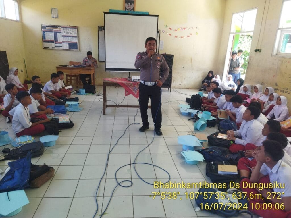 Kapolres Garut AKBP Rohman Yonky Dilatha, S.I.K., M.Si., M.H., melalui Kapolsek Leuwigoong Ipda Asep Juarna menekankan pentingnya peran aktif siswa dalam menciptakan lingkungan sekolah yang aman dan bebas dari pengaruh negatif narkoba serta pelanggaran tata tertib berlalulintas.