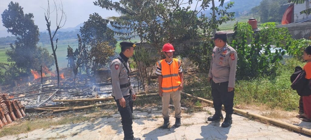 Garut | Polsek Limbangan Polres Garut lakukan cek TKP kebakaran Rumah yang melanda 3 unit rumah. Minggu (11/08/2024).