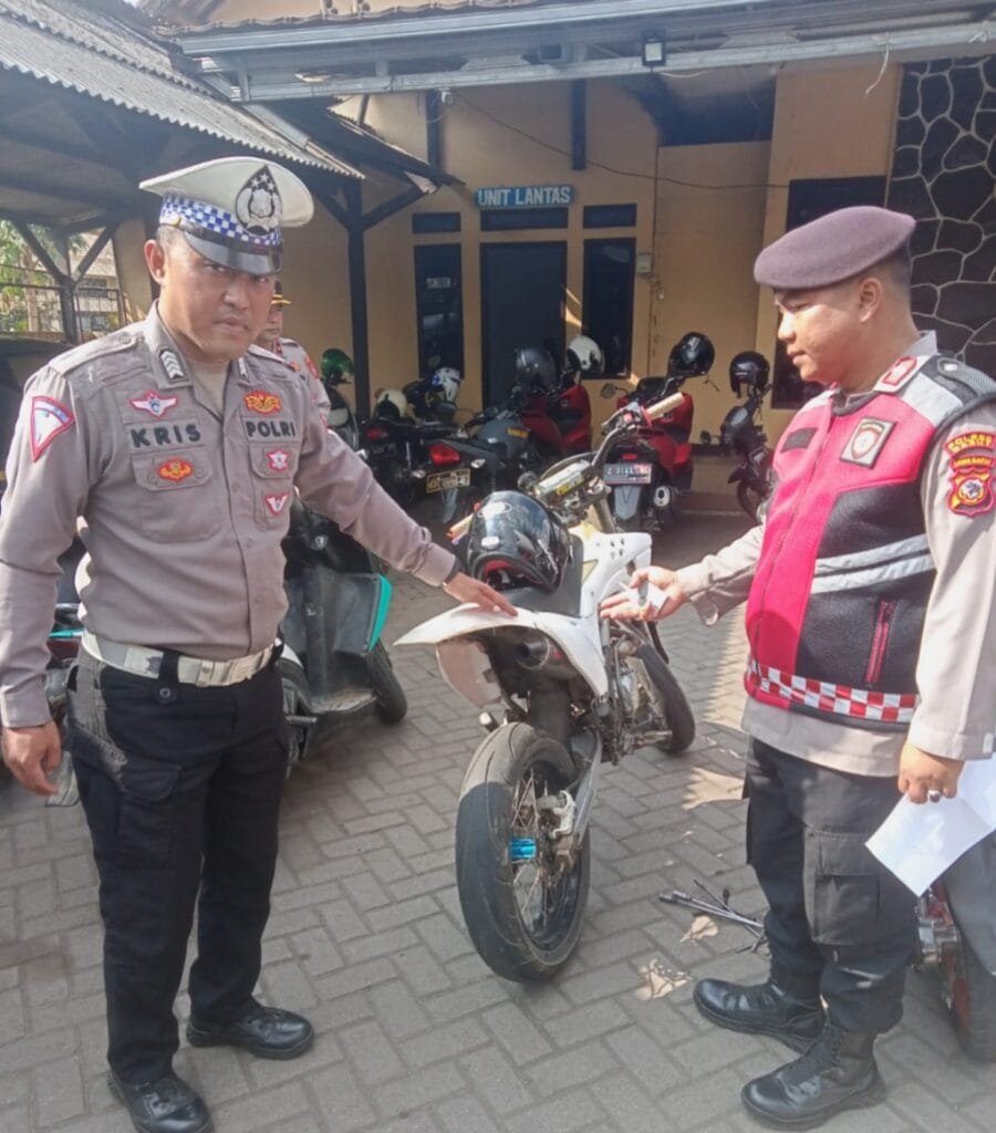 Polsek Limbangan melakukan penindakan sebanyak 5 unit kendaraan roda dua yang memakai knalpot bising/tidak sesuai dengan spesifikasi.