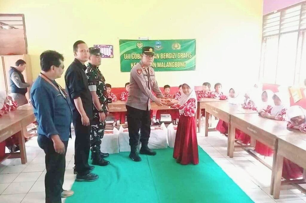 Garut | Polsek Malangbong Polres Garut bersama dengan TNI dan Forkopimcam Malangbong laksanakan kegiatan sosial dengan melaksanakan program makan bergizi. Kamis (31/10/2024).