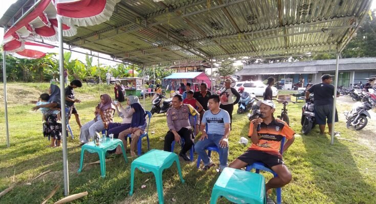 Bhabinkamtibmas Desa Sidaharja, Bripka Agus Juhara, hadir langsung di tengah masyarakat guna melakukan pengamanan sekaligus monitoring jalannya turnamen yang dimulai sejak pukul 15.00 WIB hingga selesai.