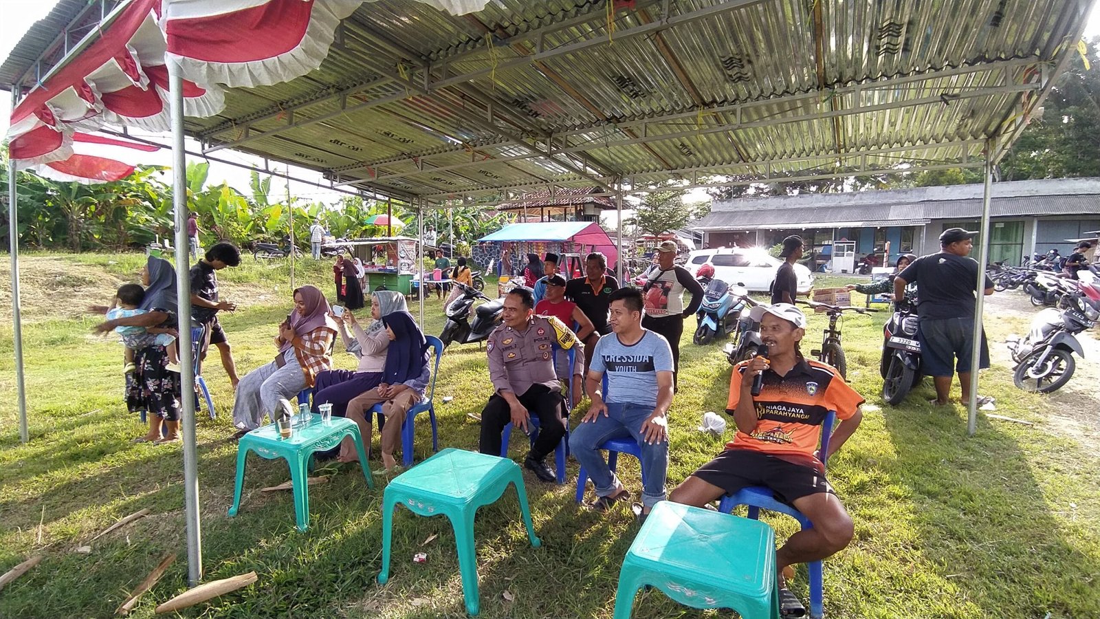 Bhabinkamtibmas Desa Sidaharja, Bripka Agus Juhara, hadir langsung di tengah masyarakat guna melakukan pengamanan sekaligus monitoring jalannya turnamen yang dimulai sejak pukul 15.00 WIB hingga selesai.