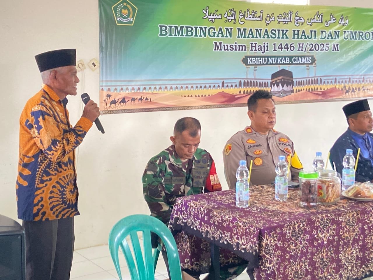 Kegiatan tersebut dilaksanakan Kapolsek Pamarican Polres Ciamis Polda Jabar AKP Jajang Sahidin. Kehadirannya turut berkolaborasi dengan unsur Muspika dan masyarakat Kecamatan Pamarican dan penyelenggara Manasik Haji dan Umroh yakni KBIHU NU Kabupaten Ciamis.