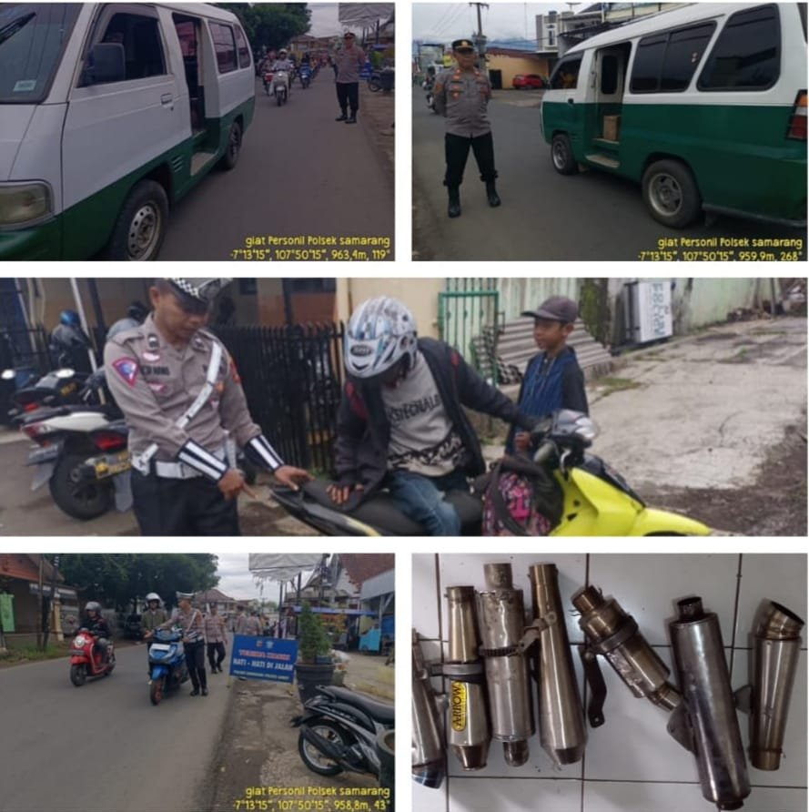 Polsek Samarang Polres Garut, melakukan penindakan kepada 10 unit kendaraan roda dua yang memakai knalpot tidak sesuai spesifikasi teknis / bising / brong.