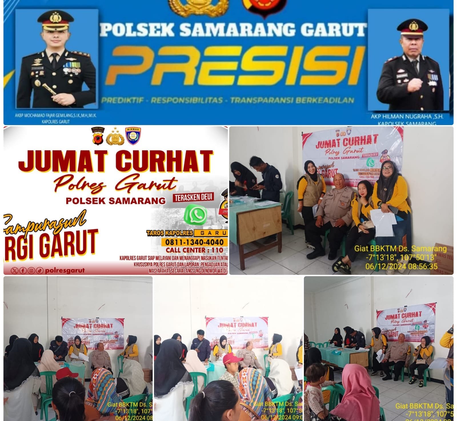 Polres Garut AKBP Mochamad Fajar Gemilang,.S.I.K.,.M.H.,M.I.K. Melalui Kapolsek Samarang AKP Hilman Nugraha,.SH.MH. Telah melaksanakan kegiatan Program Jum’at Curhat, bersama Kapolres Garut. Dan Jajaran Polsek Samarang, Dalam rangka.