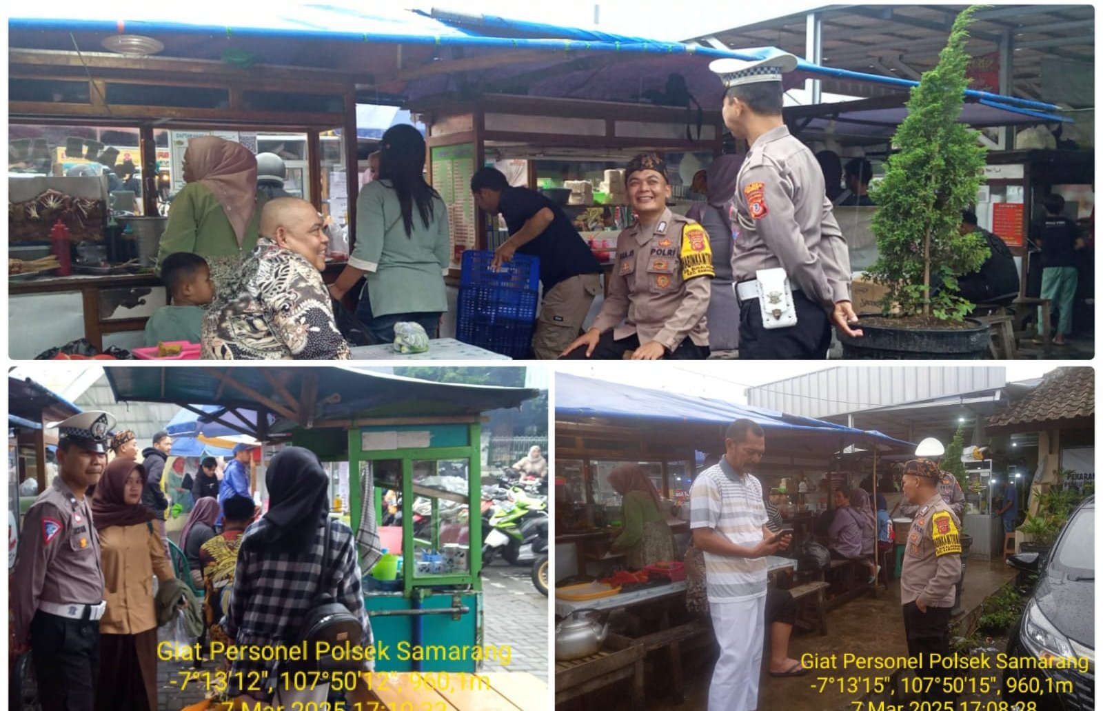 Garut.Jejak-kriminal.com-Polsek Samarang Polres Garut.Saat warga masi melakukan aktivitas di sore hari menempatkan personilnya dengan melaksanakan pengaturan lalu lintas di sekitaran Pujasera Samarang Bumdes Desa Samarang, Kamis (13/3/2025)