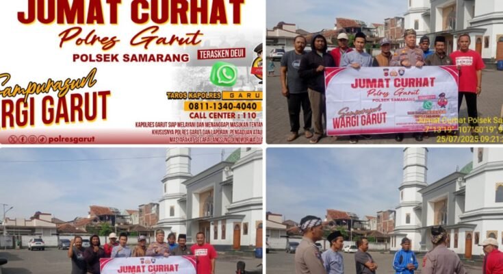 Jejak-kriminal.com-Garut Jum’at 25 Juli 2025 Kapolres Garut melalui Kapolsek Samarang program unggulannya Jum’at Curhat kembali menyapa masyarakat. Kali ini kegiatan berlangsung di DKM Mesjid Besar Kaum Samarang dan masi kp pajagan, Desa Samarang, Kecamatan Samarang, Kabupaten Garut.