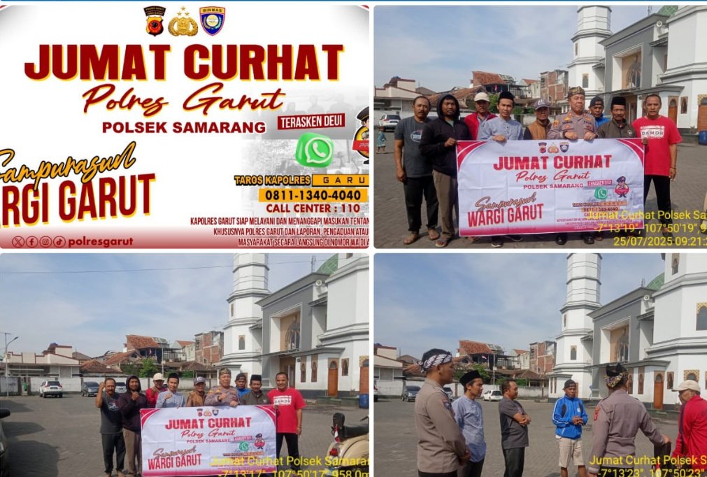 Jejak-kriminal.com-Garut Jum’at 25 Juli 2025 Kapolres Garut melalui Kapolsek Samarang program unggulannya Jum’at Curhat kembali menyapa masyarakat. Kali ini kegiatan berlangsung di DKM Mesjid Besar Kaum Samarang dan masi kp pajagan, Desa Samarang, Kecamatan Samarang, Kabupaten Garut.