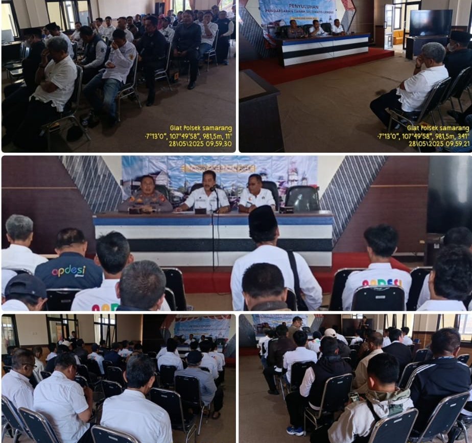 Jejak-kriminal.com-Garut Rabu 28 Mei 2025. Polsek Samarang Polres Garut. Menggelar Kegiatan Sosialisasi Program Strategis Nasional Pendaftaran Tanah Sistematis Lengkap PTSL. Yang di gelar di Aula kantor kecamatan Samarang.