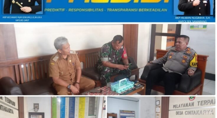 Kapolres Garut AKBP Mochamad Fajar Gemilang.,S.I.K.,M.H.M.I.K. melalui Kapolsek Samarang AKP Hilman Nugraha.,S.H. Dan Aparatur Desa yang Bertempat di kantor Desa Cintakarya Kecamatan. Samarang Kegiatan ini bentuk silaturahmi dan koordinasi dalam rangka menciptakan situasi yang kondusif, serta Menjaga kondusivitas wilayah, khususnya di kecamatan Samarang.