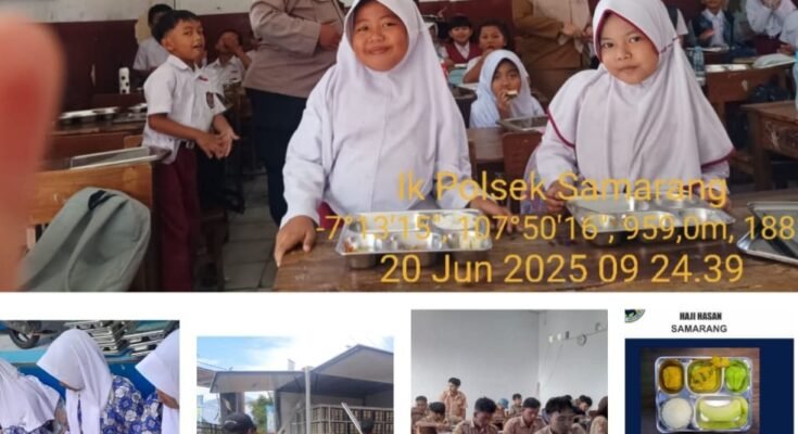 Jejak-kriminal.com-Garut Jum’at 20 Juni 2025. Kapolsek Samarang Polres Garut bersama anggota Polsek Samarang, Babinsa, staf kecamatan, dan perwakilan korwil pendidikan melaksanakan kegiatan monitoring pemberian makan bergizi gratis, yang merupakan salah satu program pemerintah, di sejumlah sekolah yang ada di wilayah Kecamatan Samarang.