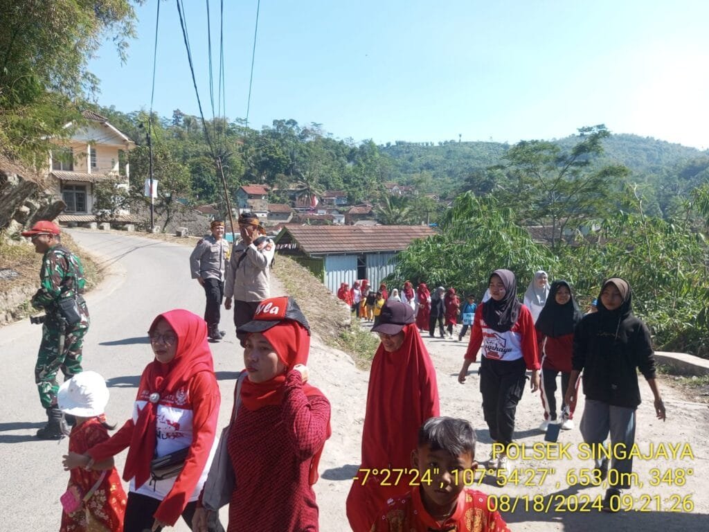 Garut | Personel Polsek Singajaya Polres Garut melakukan pengamanan jalan santai dalam rangka HUT RI ke 79. Minggu (18/8/2024).