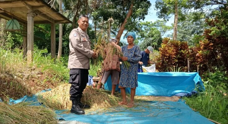 CIAMIS ~ Personel Polsek Sukadana Polres Ciamis Polda Jabar melaksanakan monitoring panen padi yang dilaksanakan masyarakat Desa Ciparigi. Kegiatan ini berlangsung di Areal persawahan Dusun Cigaleh Wetan, Desa Ciparigi, Kecamatan Sukadana, Kabupaten Ciamis, Jawa Barat, Kamis (8/5/2025).