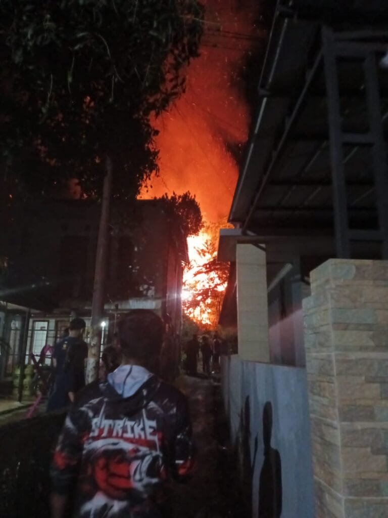 Api terus berkobar hingga sempat merambat ke rumah milik Sdr. Iwan namun berkat upaya warga sekitar yang bahu-membahu memadamkan api dengan alat seadanya, kebakaran pada rumah Iwan berhasil dicegah sehingga hanya sebagian atap rumah yang terbakar.