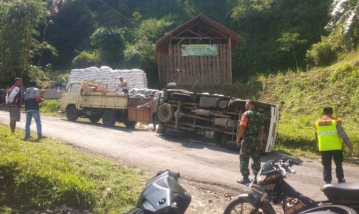 Polsek Talegong Polres Garut-Sebuah mobil boks terguling di tanjakan Datarsapi, Desa Sukamulya, Kecamatan Talegong, Kabupaten Garut, Selasa Tanggal,” (20/02/2024)