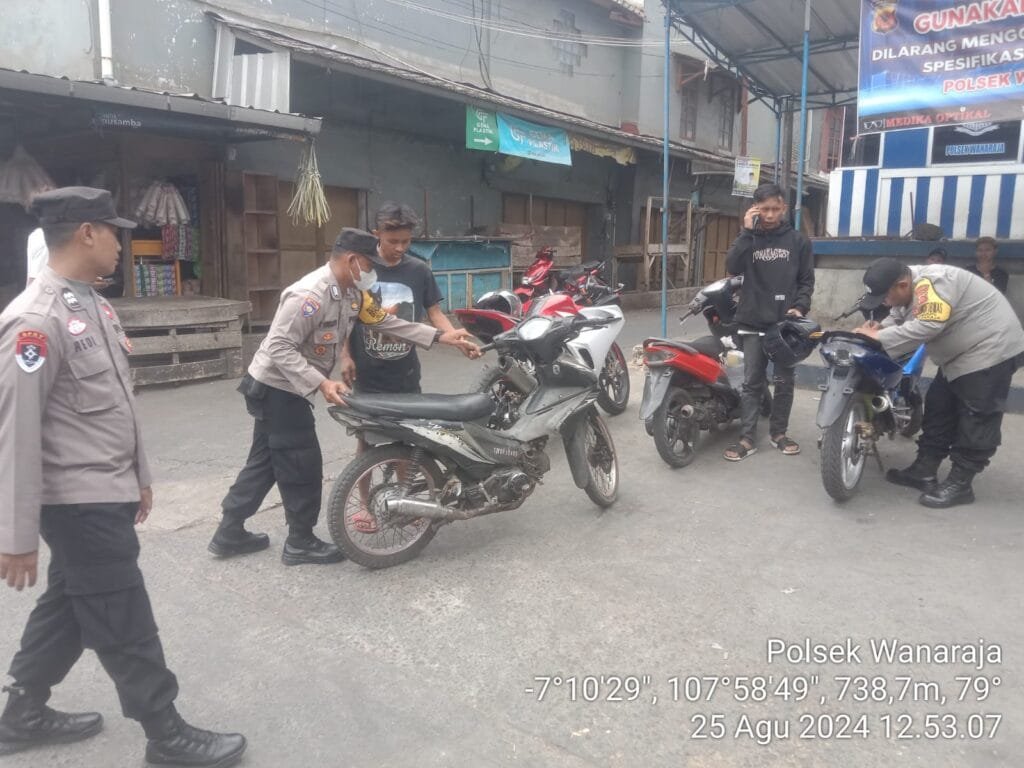 Garut | Dalam rangka pemeliharaan kamtibmas dan menciptakan situasi keamanan dan ketertiban masyarakat yang kondusif. Polsek Wanaraja Polres Garut melaksanakan operasi penertiban knalpot bising di Wilayah hukum Polres Garut. Minggu (25/08/2024).