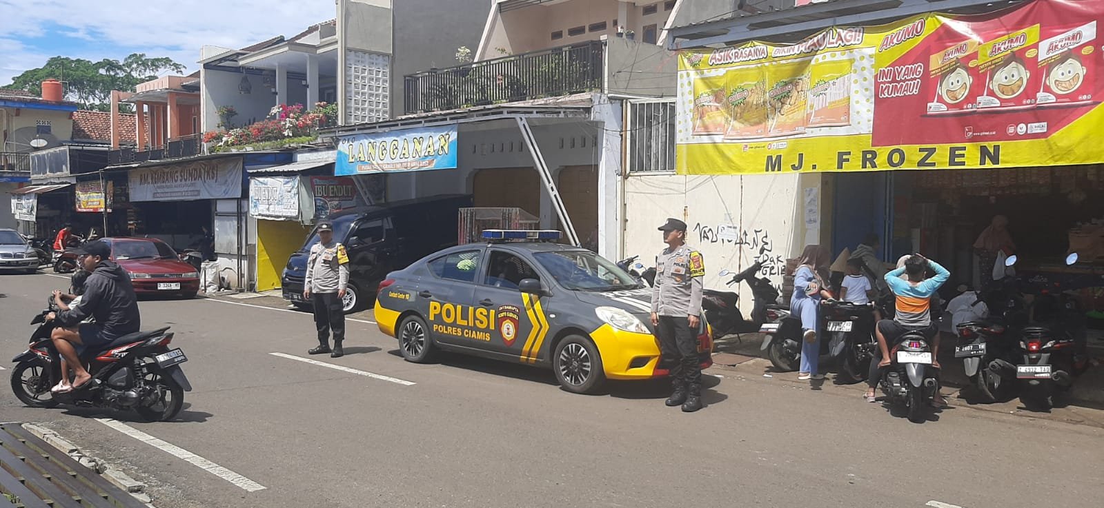 CIAMIS ~ Personel Polsek Kawali Polres Ciamis Polda Jabar melaksanakan patroli dialogis ke sejumlah lokasi keramaian warga di wilayah hukum Polsek Kawali. Dimana wilayah ini mencakup tiga kecamatan, yakni Kecamatan Kawali, Lumbung dan Jatinagara, Kabupaten Ciamis, Jawa Barat, Sabtu (5/4/2025).