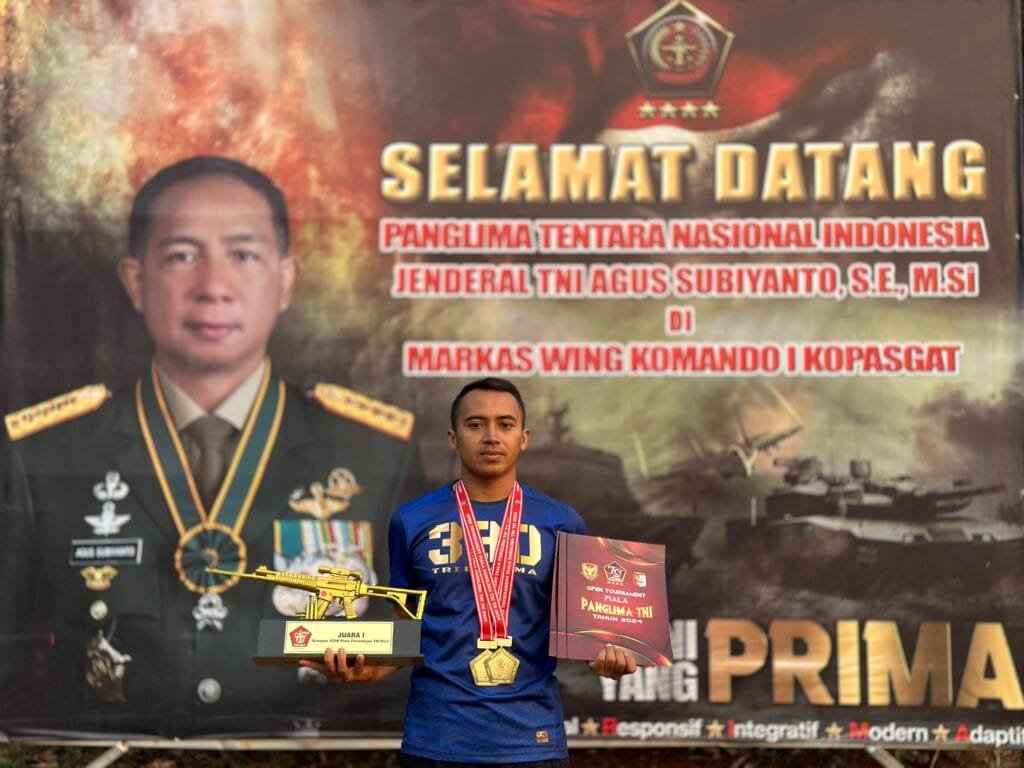 Jakarta – Kabar membanggakan Prajurit Yonif 330 Tri Dharma kali ini datang dari Cabang olahraga Menembak. Praka Ali Firdaus, salah satu atlet tembak andalan Tri Dharma sukses meraih prestasi Juara 1 pada materi Senapan Jarak 100 Meter Plat 3 Sikap pada Open Turnamen Lomba Menembak Piala Panglima TNI TA 2024 yang berlangsung di Lapangan Tembak Djamsuri Wingkopasgat 1 Halim Perdanakusuma, Jakarta, Minggu (22/09/2024).
