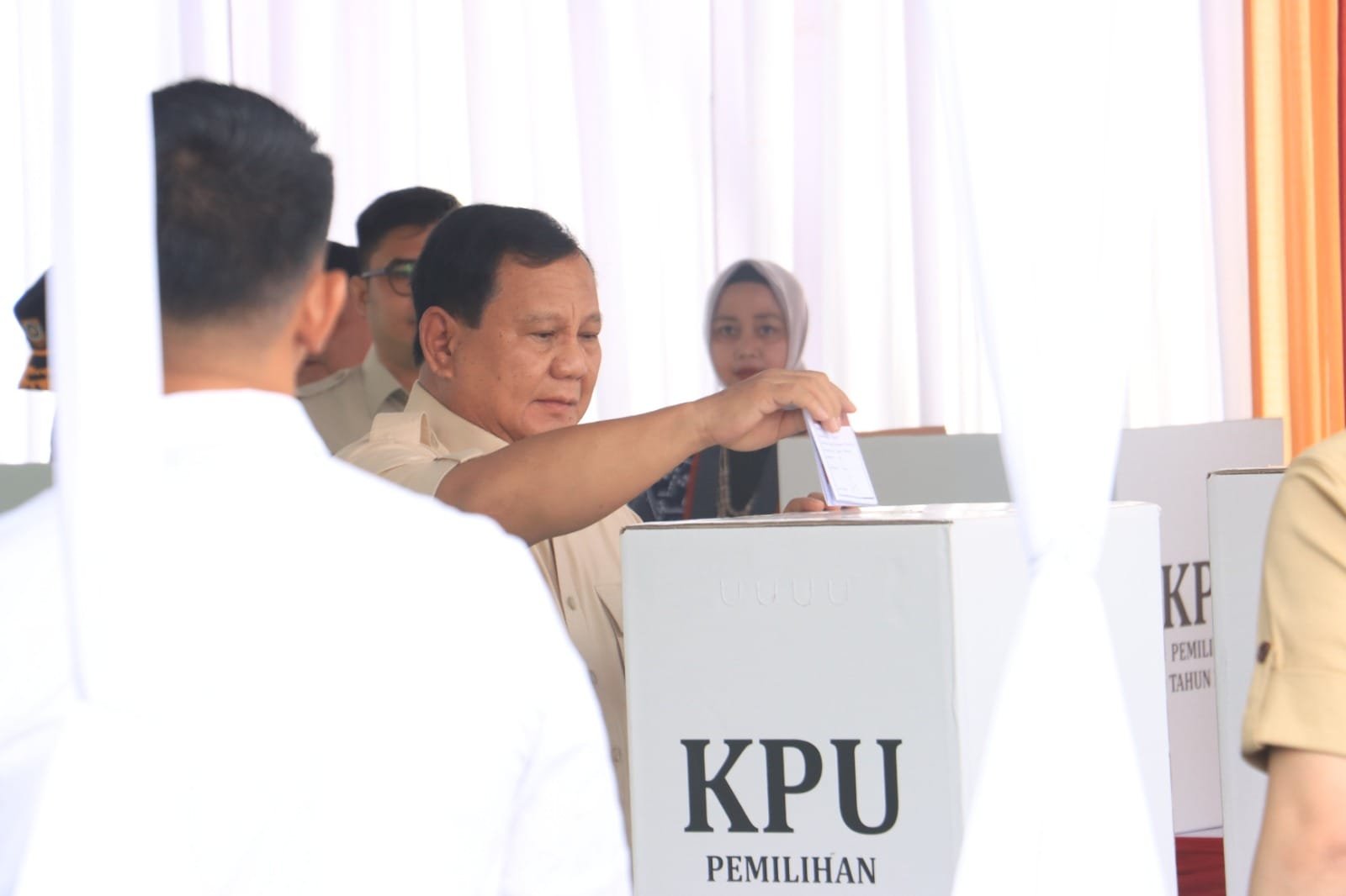 Presiden RI Prabowo dalam kesempatan tersebut menyampaikan apresiasi kepada penyelenggara Pemilu yang telah bekerja keras untuk kelancaran jalannya pemungutan suara.