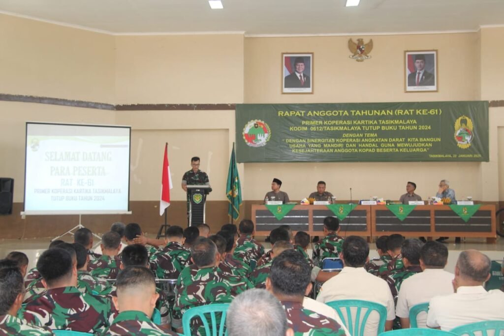 Tasikmalaya.Jejak-kriminal.com-Makodim 0612/Tasikmalaya Jl. Taman makam Pahlawan No.1 Kota Tasikmalaya, melaksanakan agenda rutin tahunan yaitu Rapat Anggota Tahunan (RAT) Pertanggung jawaban Pelaksanaan Anggaran Belanja Primer Koperasi Kartika Kodim 0612/Tasikmalaya, Rabu, (22/01/2025)