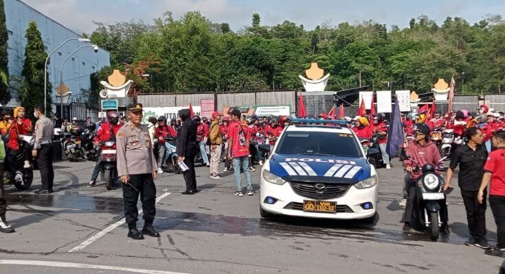 Garut | Polres Garut jaga unjuk rasa dari beberapa aliansi Buruh seperti Aliansi Serikat Burus Kasbi, Sarbumusi, Danbi dan lainnya. Kamis (21/11/2024).
