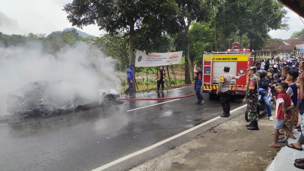Garut | Polsek Cilawu Polres Garut gerak cepat respon laporan masyarakat dengan menurunkan personil melakukan pengamanan kebakaran satu unit mobil jenis Hyundai Avega Plat nomor polisi D 1109 XE di Jalan Raya Garut – Tasikmalaya Kp. Sukamulya Desa Dayeuhmanggung Kecamatan Cilawu Kabupaten Garut. Senin (27/1/2025)