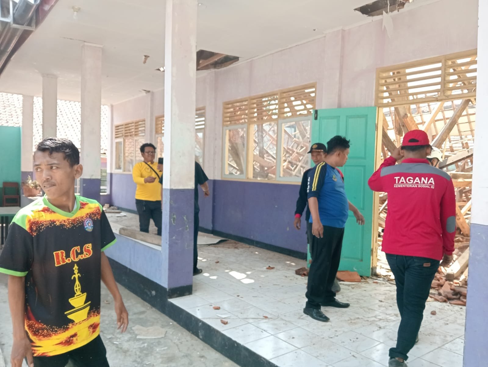 Dan saat ini puing puing reruntuhan bangunan sekolah ruang kelas Leb IPA sedang di aman kan,di bersihkan,di evakuasi oleh gabungan relawan Tagana,Rescue,RCS,MDMC,RAPI,Babhinsa,Bahbinmas Pamarican dan warga setempat