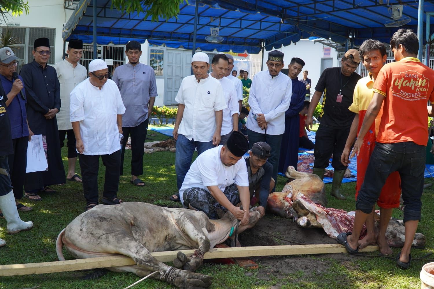 Kegiatan dilanjutkan dengan penyembelihan hewan Qurban. Kepala Rutan Kelas I Medan, Andi Surya, menyampaikan pelaksanaan sholat ied dan pemotongan hewan Qurban sebagai bagian dari upaya membina dan meningkatkan keimanan serta ketakwaan para warga binaan.