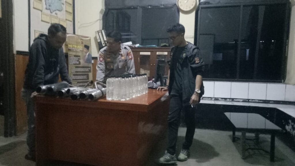 Total miras yang disita personel polsek cibatu Sebanyak 28 botol berjenis ciu/leci dan 7 knalpot brong