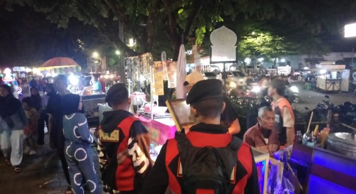 CIAMIS ~ Personel Satuan Samapta Polres Ciamis Polda Jabar melaksanakan patroli jalan kaki dalam rangka cipta kondisi di tempat keramaian masyarakat saat Malam Takbir menyambut Hari Raya Idul Fitri 1446 Hijriyah. Patroli jalan kaki ini dilaksanakan di kawasan Alun Alun Ciamis, Ciamis, Kabupaten Ciamis, Jawa Barat, Minggu, 30 Maret 2025, malam.