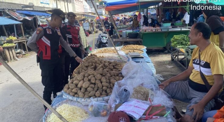 Mereka memberikan imbauan terkait antisipasi tindak kejahatan, seperti pencurian, copet, maupun penipuan, yang kerap terjadi di kawasan pasar.