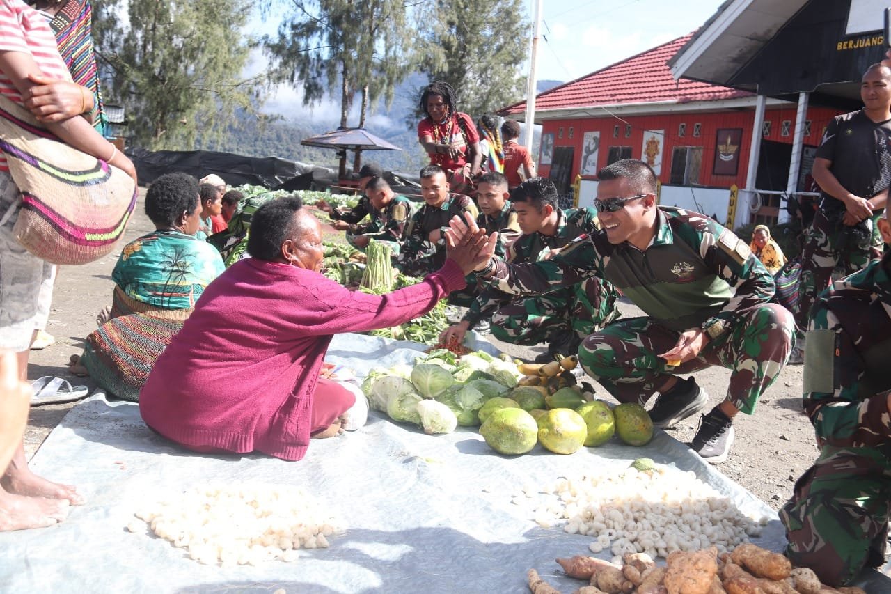 “Kami semua warga Intan Jaya sangat merasakan manfaat adanya kegiatan borong hasil bumi yang diadakan oleh Satgas 330. Selain dagangan selalu diborong semua, warga juga dapat berbagai macam hadiah dari om-om 330 berupa baju, bibit dan obat-obatan. Semoga Tuhan selalu berkati dan lindungi Satgas 330. Amakanie”, ujar Mama Juliana berseri-seri.