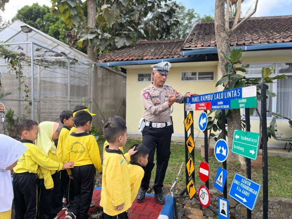 Satlantas Polres Garut juga memberikan himbauan dan pengarahan sederhana kepada anak-anak mengenai pentingnya tertib berlalu lintas, baik saat di jalan, di rumah, maupun di sekolah.