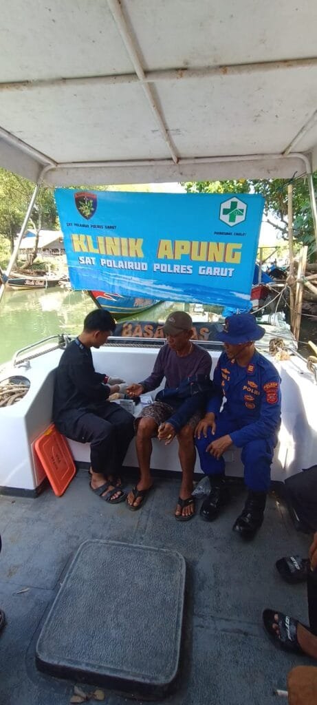 Garut – Dalam semangat pelayanan dan kepedulian terhadap kesehatan masyarakat, Kasat Polairud Polres Garut, AKP Anang Sonjaya beserta anggota menggelar kegiatan Klinik Apung.
