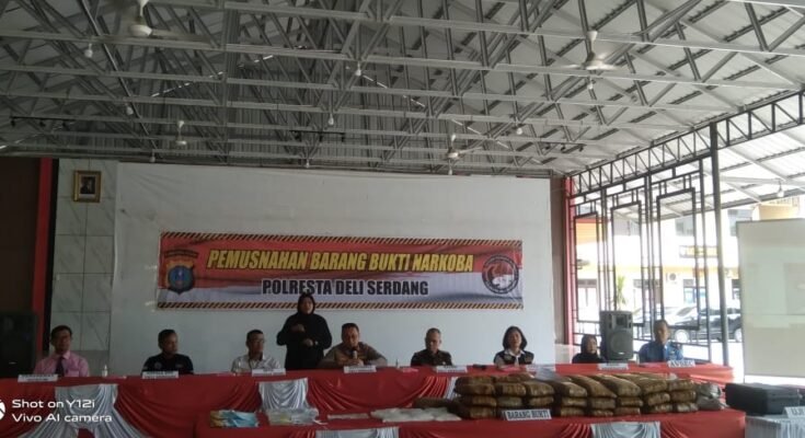 Pemusnahan barang bukti dilakukan menggunakan alat incenerator milik BNNK Deliserdang, dan dengan cara dibakar secara manual, disaksikan 8 tersangka, dipimpin Kapolresta Deliserdang, bersama Kajari Deliserdang diwakili Kasi Pidum Symon Morrys, perwakilan Ketua PN Lubukpakam, perwakilan BNNK Deliserdang, Dinas Kesehatan Deliserdang, dan perwakilan Avsec Bandara Kualanamu.Kapolresta Deliserdang Kombes Pol Raphael Sandhy Cahya Priambodo SIK dalam sambutannya mengatakan pemusnahan itu sebagai bukti bahwa narkoba adalah musuh kita bersama dan Polresta Deliserdang serius untuk melakukan pengungkapan.