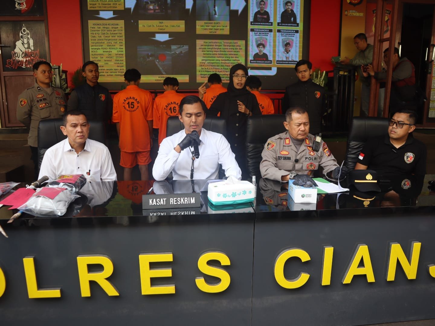 Polres Cianjur – Jejak-kriminal.com- Sat reskrim Polres Cianjur melaksanakan konferensi pers pengungkapan kasus tindak pidana pengeroyokan yang mengakibatkan korban jiwa. Konferensi pers tersebut dipimpin oleh Kasatreskrim Polres Cianjur AKP Tono Litianto, S.T.K., S.I.K., M.H., C.P.H.R. dan berlangsung di depan Gedung Satreskrim Polres Cianjur, Senin (16/12/2024).